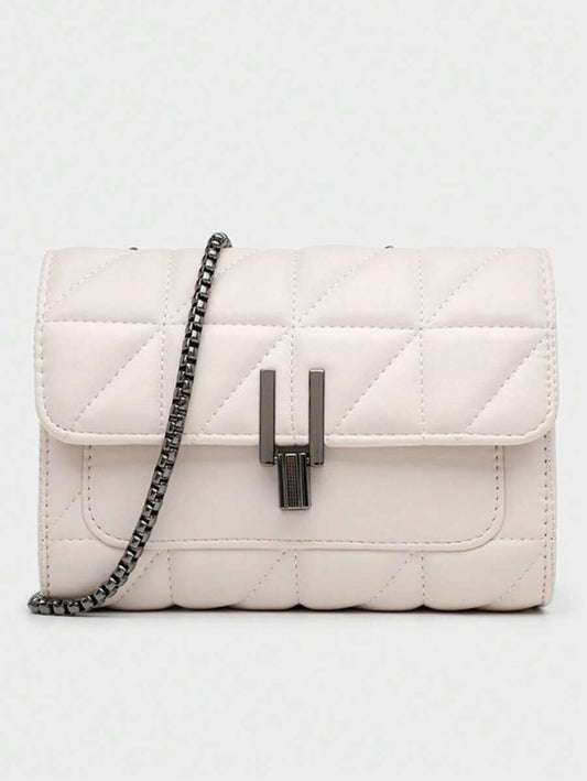 Bolsa Feminina Pequena Transversal Bege com Corrente