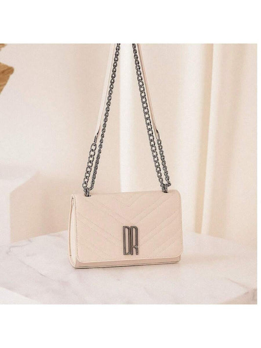 Bolsa Feminina Transversal Ombro Crossbody Bege Corrente