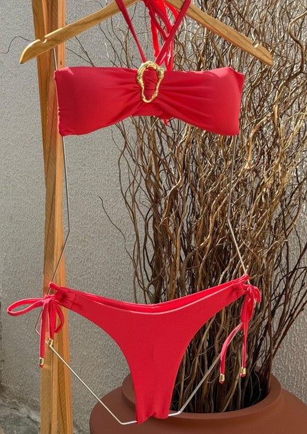 O Biquíni Maré Dourada é a expressão perfeita do charme litorâneo aliado à elegância contemporânea. Seu top com bojo removível oferece modelagem confortável, enquanto as alças com amarração no pescoço e nas laterais garantem ajuste preciso e versatilidade.