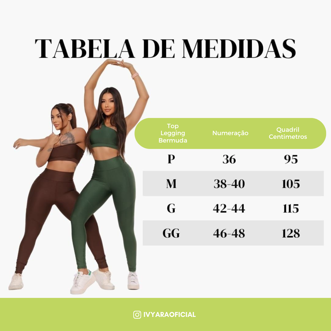 A legging possui cós alto e anatômico, que se ajusta ao corpo e modela a silhueta, proporcionando firmeza sem apertar. O top Luna vem com forro duplo, entrada para bojo e alças em rolotê, que oferecem sustentação e conforto ideais para qualquer tipo de exercício.
